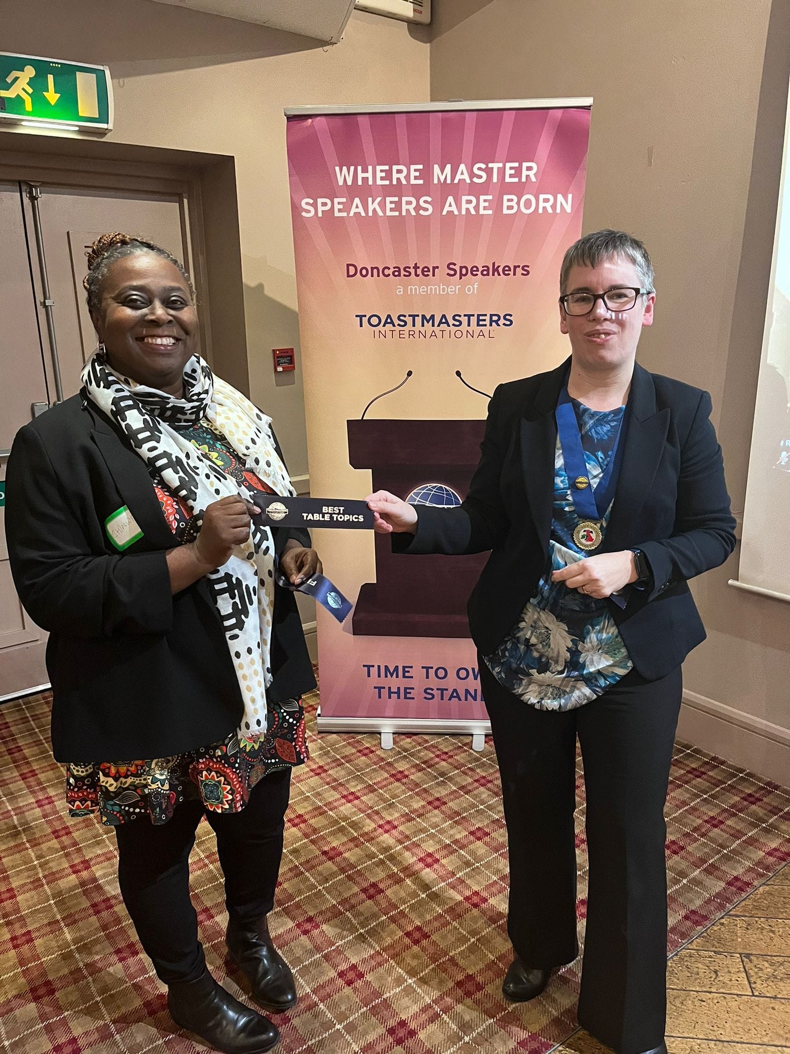 Let us congratulate this week’s winners especially our most valued guest Chinwe who won Best Table Topics and was awarded with first timers ribbon for getting up in front of everyone to deliver an impromptu speech on her very first visit.