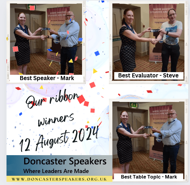 Andy Howell as Toastmaster gave us an engaging theme of the evening, inspired in part by Doncaster hosting national Pride on Saturday: ‘The Beauty of Being Different.’ The theme carried throughout the meeting thanks to Andrew Miller’s choice of ‘diverge(nt)’ as the word of the day, which members were challenged to include, and Lianna Williamson’s thought-provoking table topics questions on the theme of diversity.