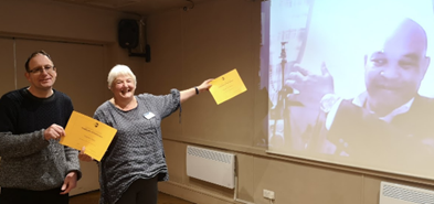 Elizabeth Mead our Area Director presenting the awards to Mr Steven Bisby and Mr Donald Sweeting, both our participants who entered the contests today.